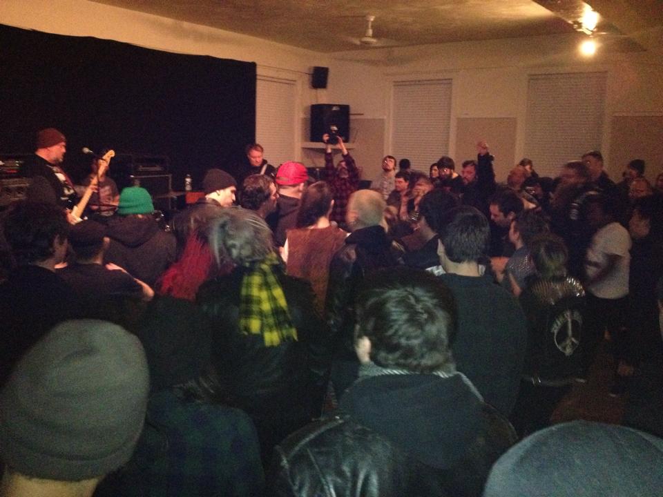 Our first practice went great. I learned right off the bat Jimmy was an encyclopedia of old hardcore songs and could jump in to any of the brief jams on cover songs we fooled around with (Black Flag, SSD, Slapshot, etc.) Our second attempt at a practice only kind of happened because of a communication issue and it was just Al, Ian and myself. Playing hardcore without drums is kind of a useless exercise really. No worries, we’d pick it up a few days later with the whole band. A couple of snow day cancellations later and we were ready to meet up again. We all got to the practice spot in South Boston at the same time only to discover we didn’t have keys to get in. A week before the show. On the drive back we noticed the spot where the famous Channel club was, we decided to get out and take some photos and a hilarious video of Al and Ian “stage diving” into a snow bank. I passed on the snow bank stage dive because the camera adds about 40 pounds to me. We got two more practices in the week of the show and nailed everything. Everyone left the last night happy and confident.
