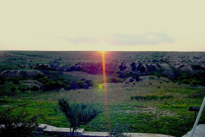 The drive was similar to the drive in the north east part of Texas for a couple of hours, filled with winding hills with a good amount of green and colorful flowers on the side of the road. This eventually turned into just flat, straight long stretches through farms. Occasionally a rusty cloud of dust would snake its way upwards like miniature tornadoes. I tried to capture it with my camera phone but I didn’t do it much justice. Every half hour or so I would pass through a small town that took thirty seconds to drive through, and then back going in a straight line for miles on end. I tend to listen to podcasts or people talking more than music at this point as it makes the time go by faster.